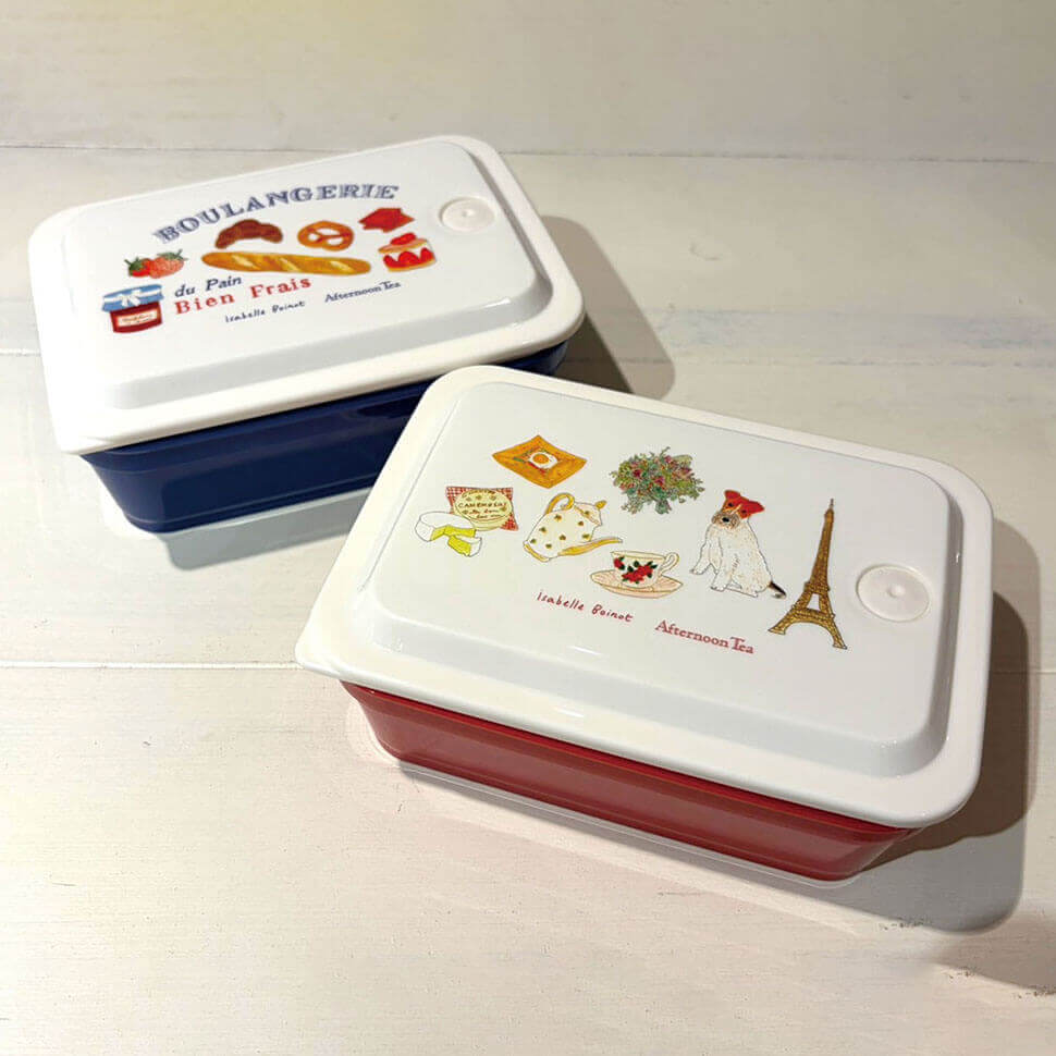 フランス在住のアーティスト、イザベル・ボワノとコラボレーションしたランチボックスです。パッキンが一体型のお手入れしやすいシームレス仕様です。蓋は高さがあるため、盛り付けた食材がつぶれにくいのも魅力です。