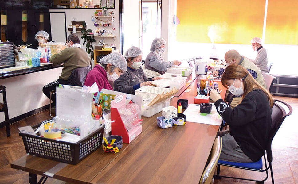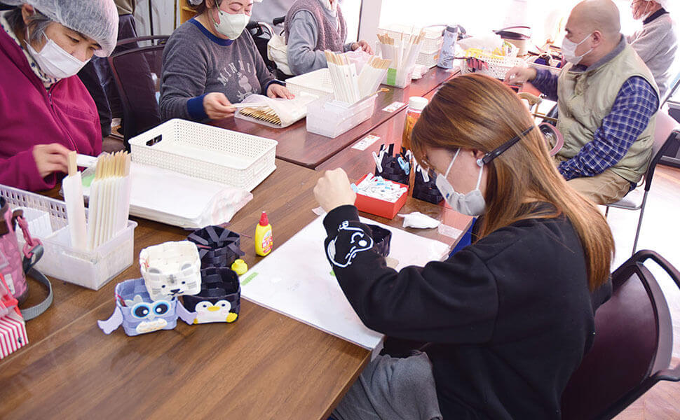 障がいや心の病によって、一般就労が困難な方や、就労を続けることが困難な方々に、スタッフのサポートのもとお仕事をしていただく場所です。