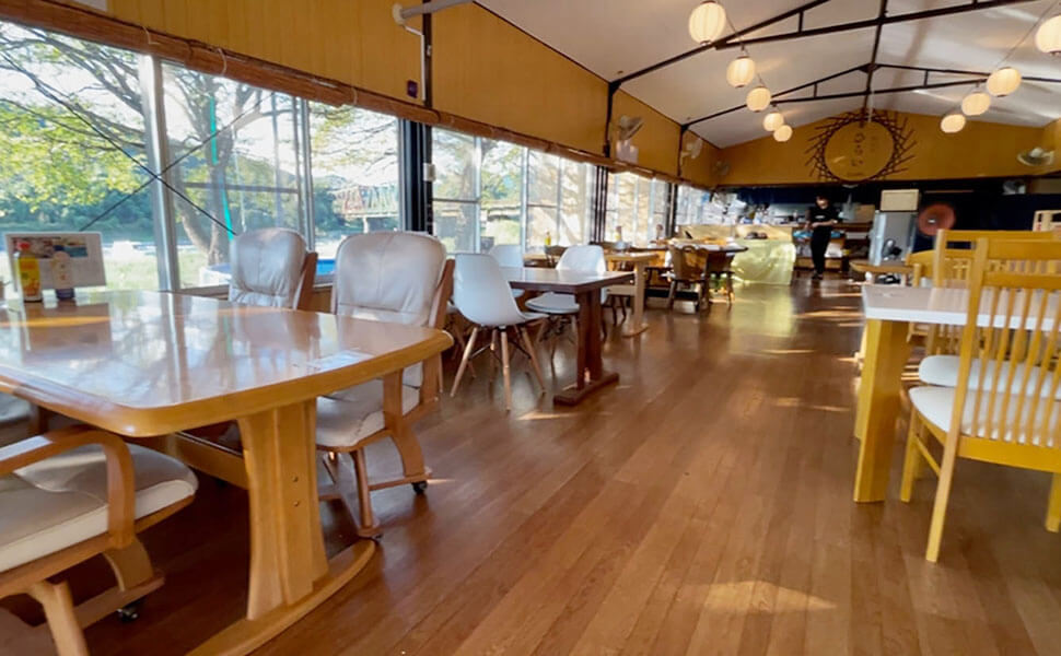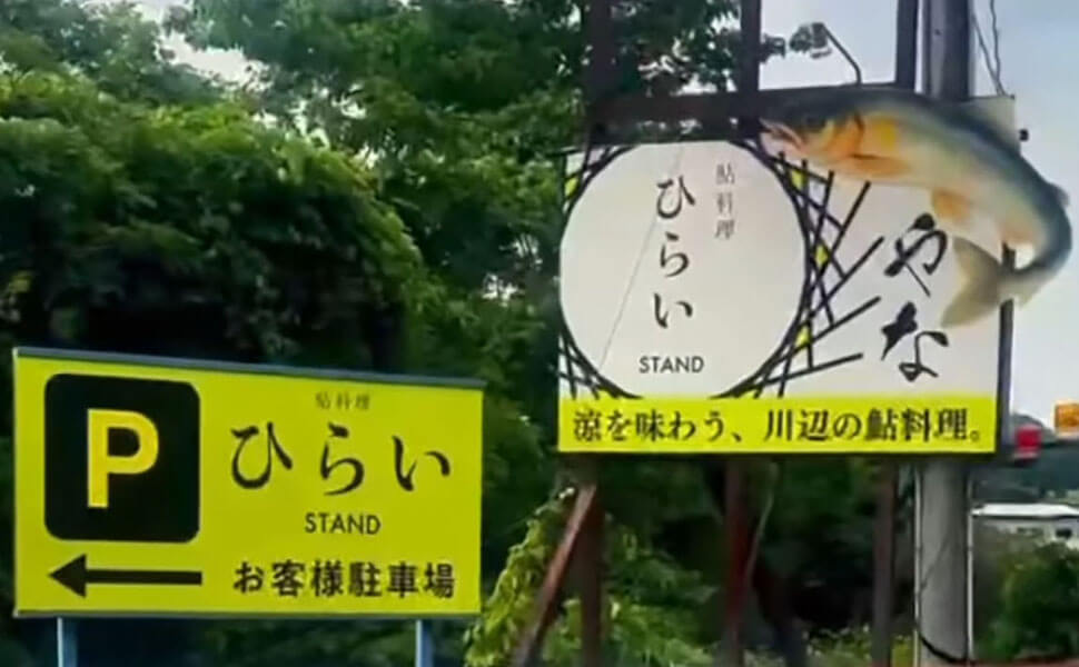岐阜県本巣市の薄墨街道沿い、根尾川の自然景観を眺めつつ美味しい鮎料理が堪能できる『鮎料理ひらい』。