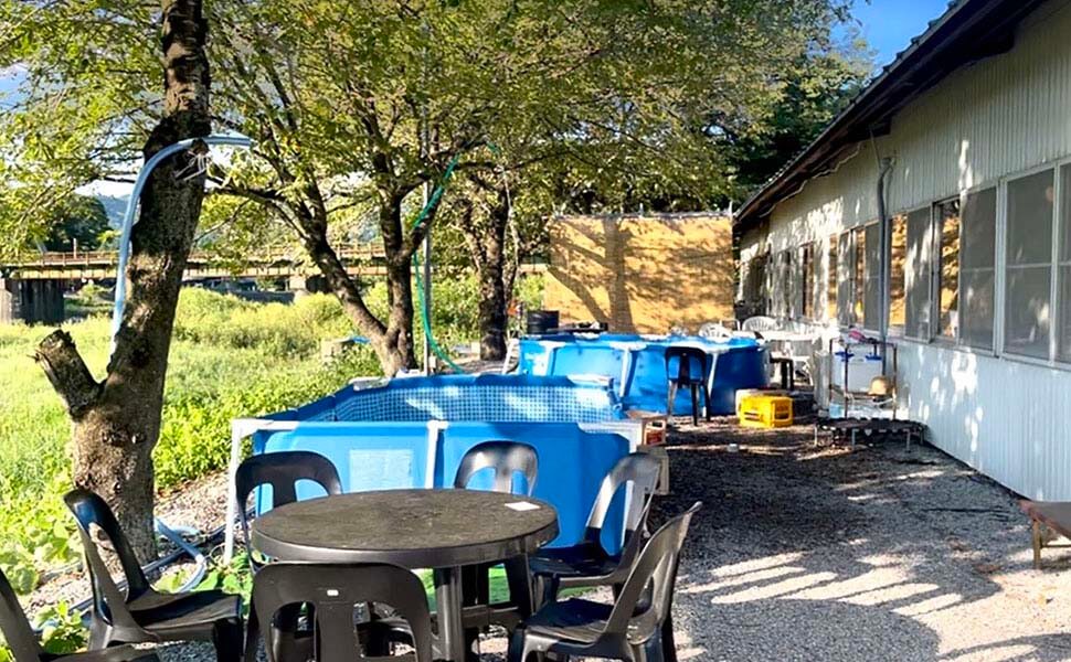 8月には鮎のつかみどりもあり、子どもも大はしゃぎ!美味と自然が織りなす特別な時間を過ごせる『鮎料理 ひらい』は、毎年6月から10月末まで営業しています。