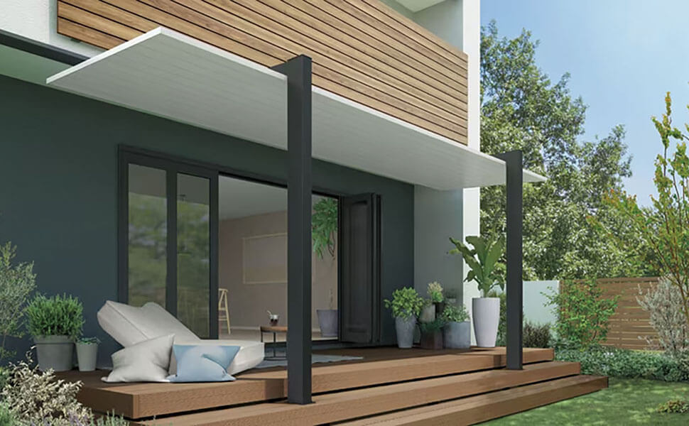 例えば、よく注文があるというカーポート。駐車場の屋根部分。日光量を調整できるから、車が熱くなりにくいのはもちろん、車が汚れにくくなるのが大きなメリット。一方で、柱が前方にあると、駐車の際に止めにくかったりしますし、そもそも屋根部分が低いと、圧迫感を与えやすく、窮屈に感じることも。