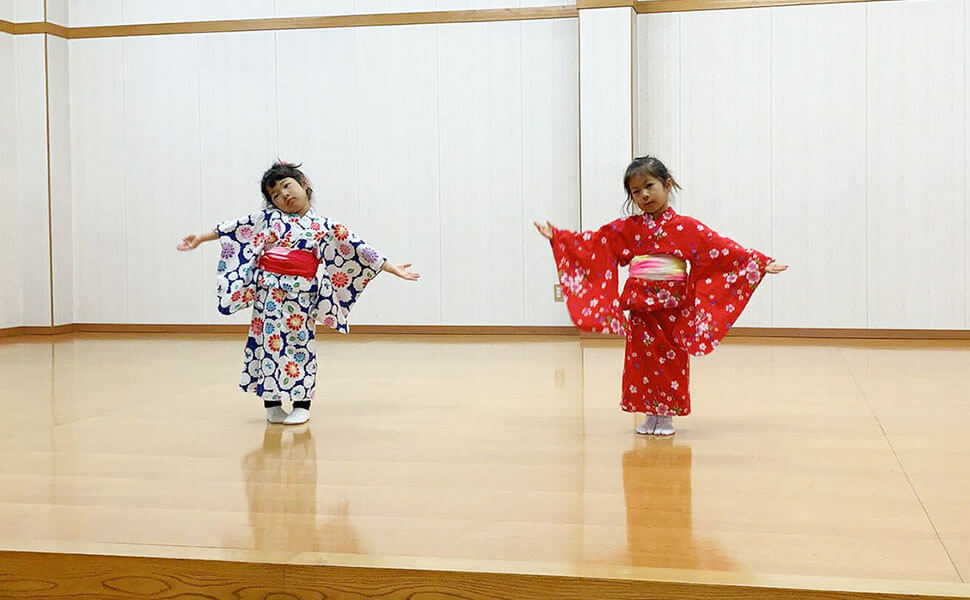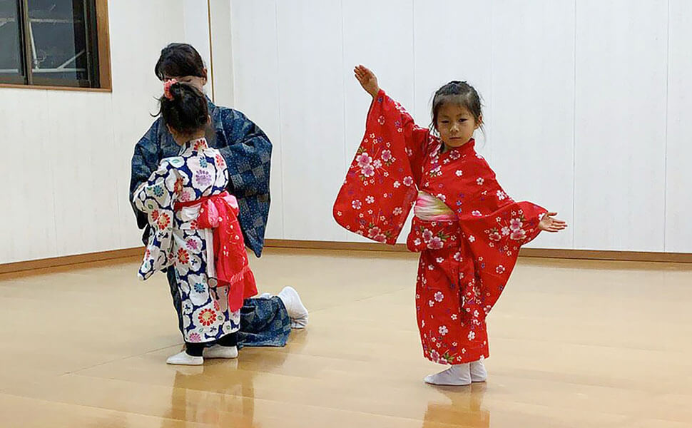 同年代のお友達と楽しみながら通っています!子ども達が楽しめるような今時の曲などもあり、和の心と、着物への親しみ、礼儀なども学べています。長い目で見て子どもの成長にプラスになると思います。(幼児クラス 母)