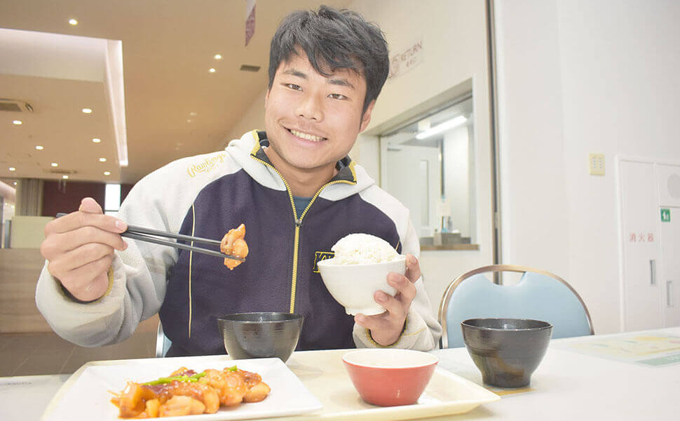 岐阜協立大学で 野菜たっぷりランチ期間限定販売【学生たちが楽しみながら学ぶ!大垣市推進の「飛び出す健康増進」】 「さつまいもの甘みと鶏肉のピり辛味がよく合い、ごはんが進みます♪」食堂でモリモリ食べるスポー... -