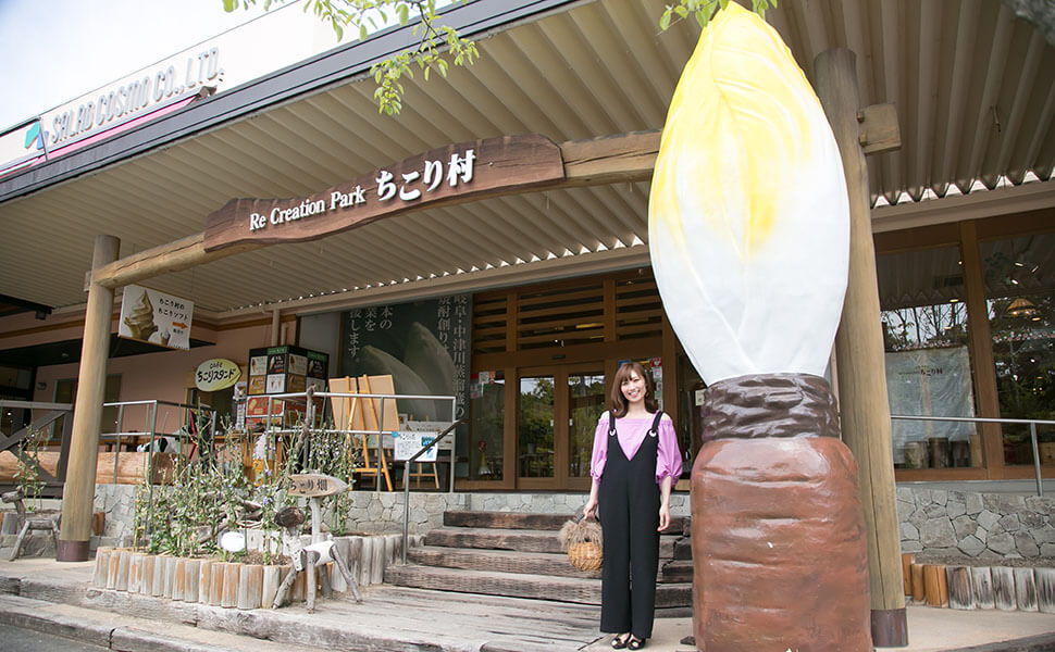 アクセス:中央自動車道「中津川I.C.」を出たら「中津川方面」からR19へ入り、すぐ左折してR255方面へ入り、点滅信号のある交差点「会所沢」を右折。その先に「ちこり村看板」あり。