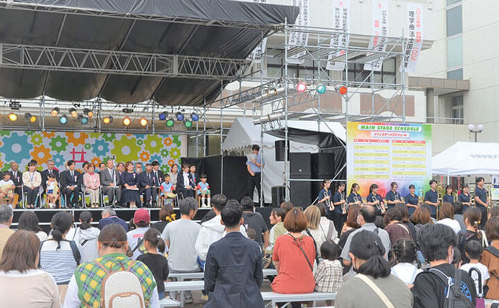 関市にある中部学院大学 中部学院大学短期大学部で開催される大学祭『たのしみん祭』。大学生のみならず地域住民の方々、各関係機関、企業からの参加があるイベントステージは、子どもからご年配の方まで楽しめる企画で盛り上がります。