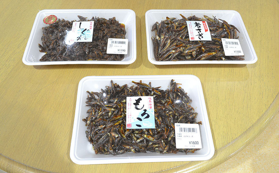 木曽三川で捕れたモロコや若サギなどを使った特産品の佃煮