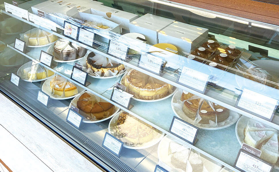 種類豊富なチーズケーキなどが、ショーケースにずらりと並ぶ♪(©️SAKURA編集部)