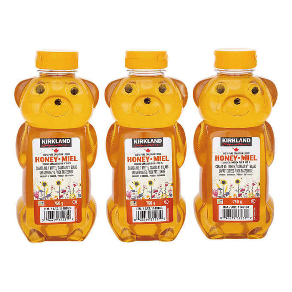 カークランドシグネチャーのカナダ産はちみつ。かわいいボトルが特徴です。使いやすいサイズで、ストックにもおすすめです。