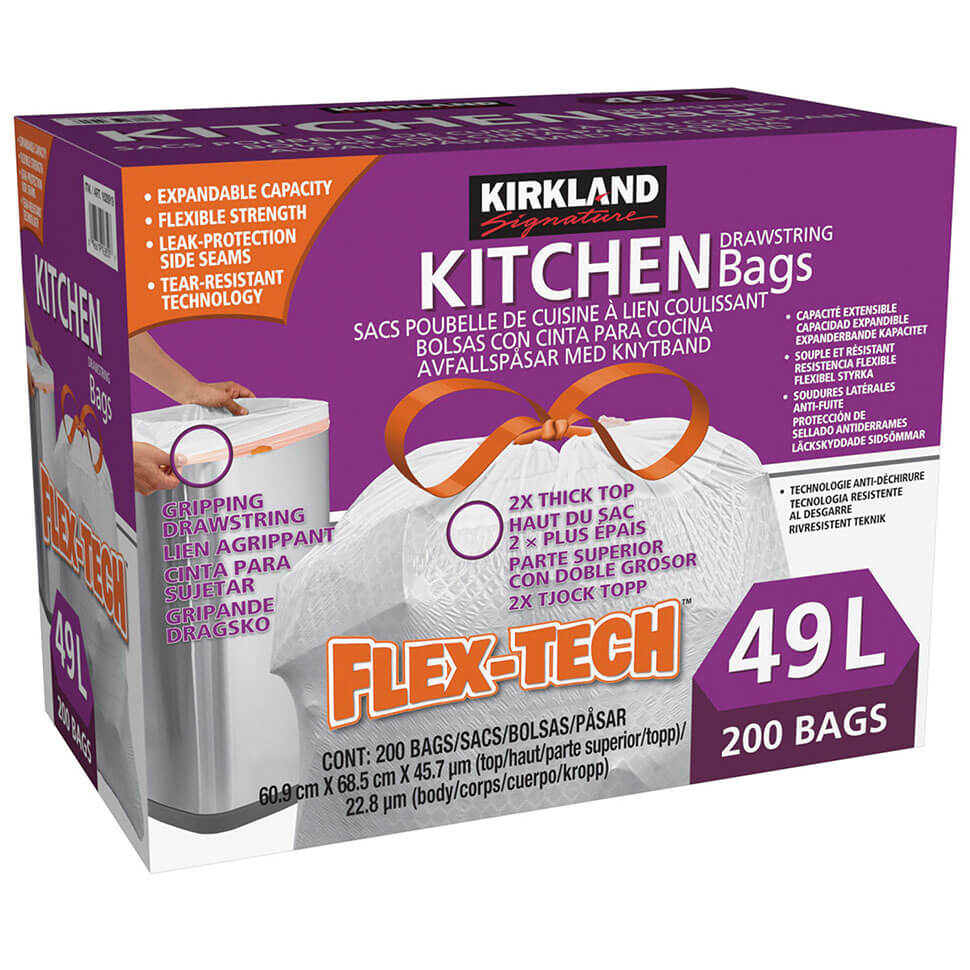 49.2Lの大きさで白色のごみ袋が200枚入っています。袋自体が強く上部にひもが付いているので、結んで簡単にゴミ出しができて便利です。ご家庭用はもちろん、オフィスのごみ袋やアウトドアにも利用できます。