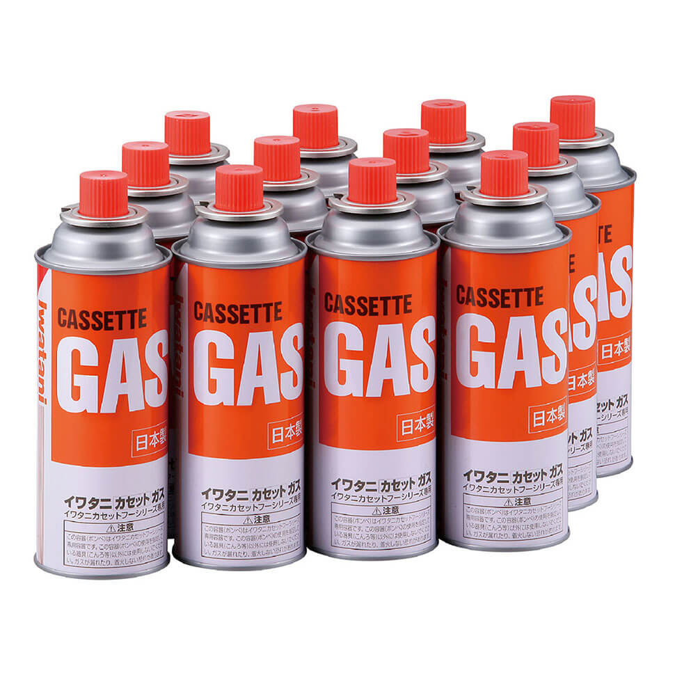 普段使いや備蓄用に。イワタニカセットガス12本入り。災害用備蓄としても備えられます。日本製、1本あたりのガス容量は、250g。