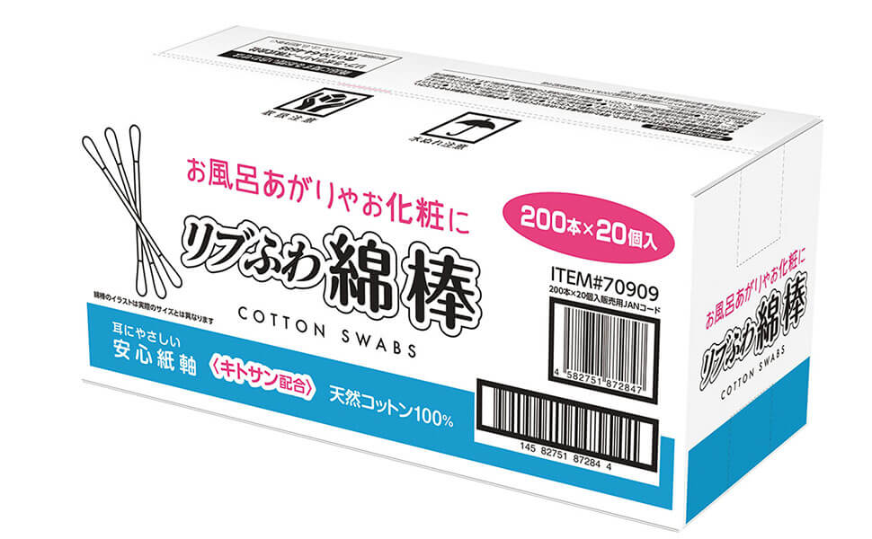◆リブふわ綿棒 天然コットン100% (200本×2×10個) 1,298円(税込)