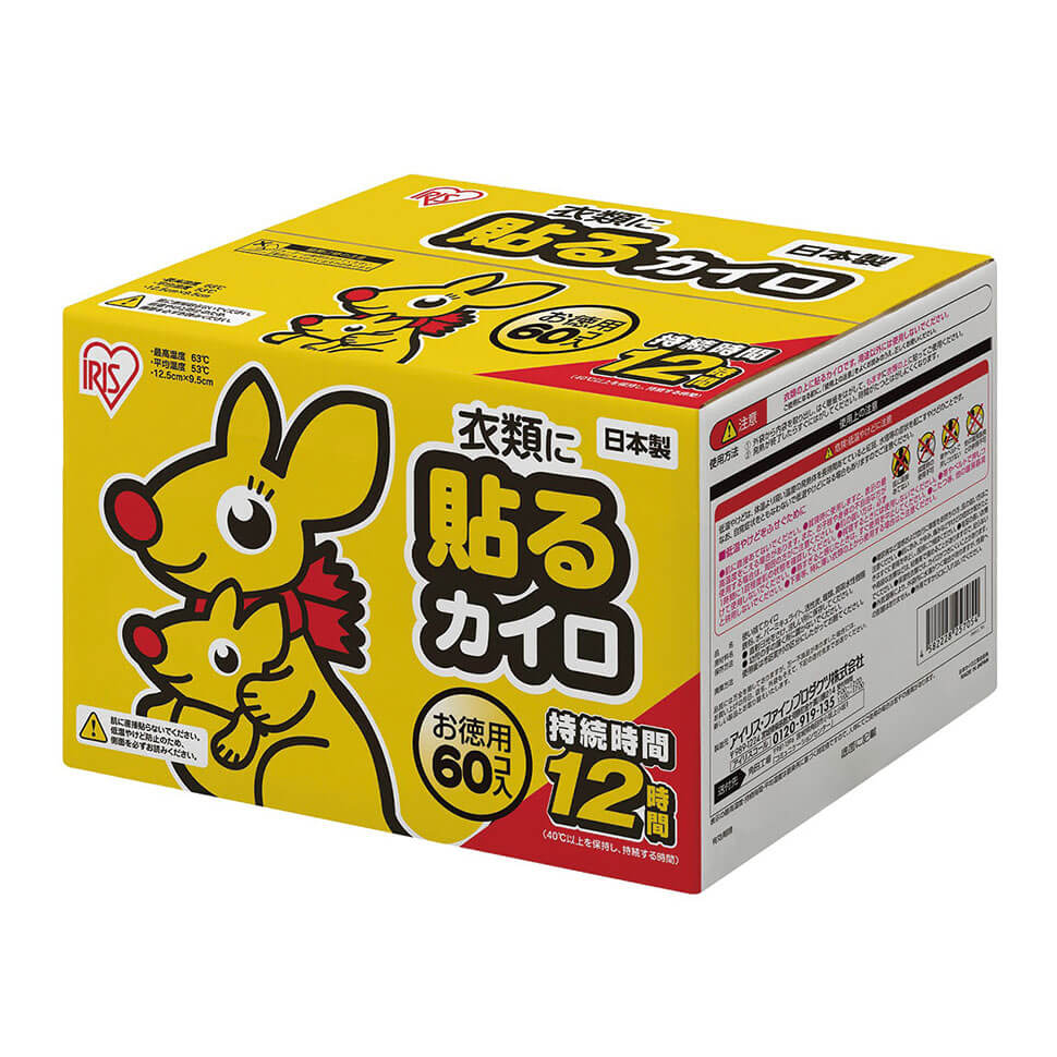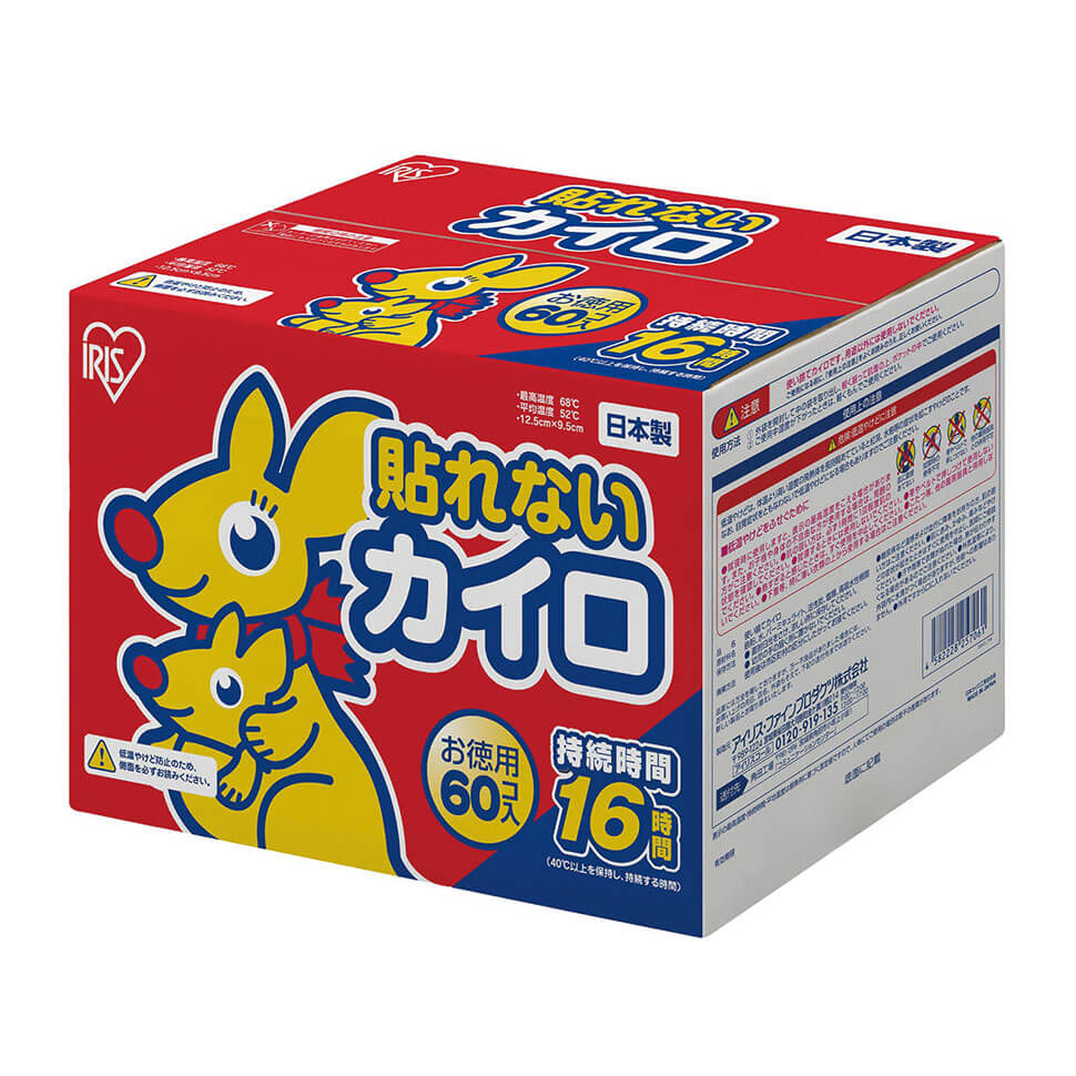 ◆IRIS ぽかぽか家族レギュラーサイズ 貼れないカイロ 60個 998円(税込)