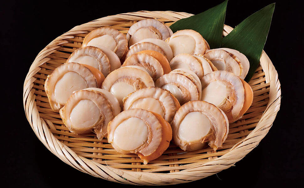 回答してそのまま食べることのできる、生食用ボイルホタテ1kgです。貝柱だけではなくヒモも付いた肉厚なホタテは、バターソテーなど加熱しても美味しいです。