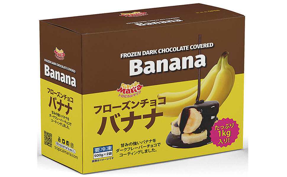 完熟したバナナをダークチョコレートでコーティングしました。アイス感覚で食べられるバナナがSNSで評判に!