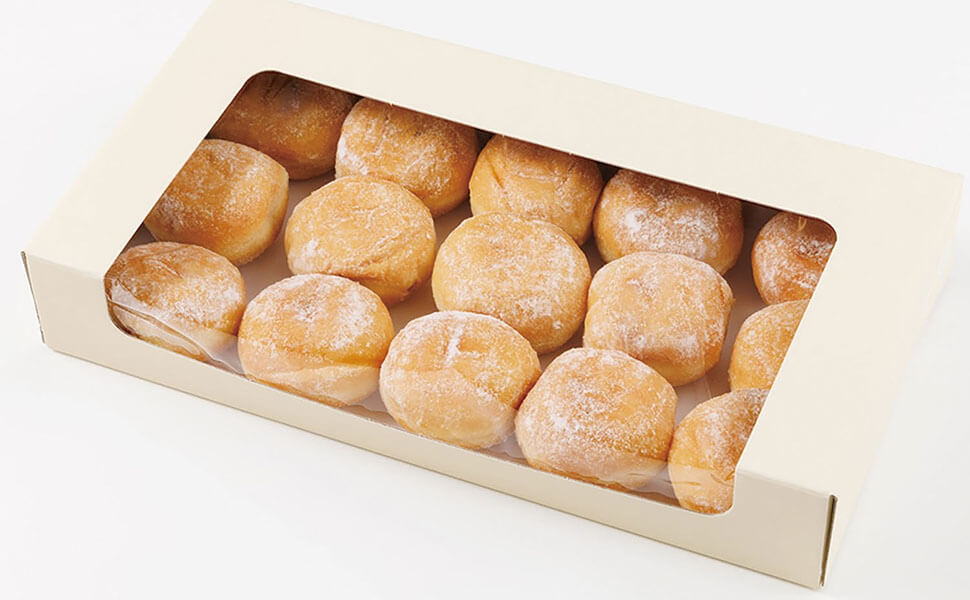 小さな丸型のふわふわドーナツに、とろっとしたキャラメルソースが入っています。