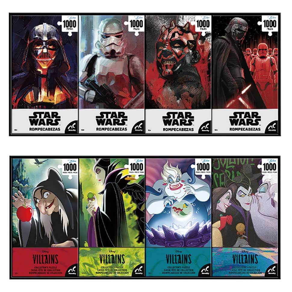 ディズニーやスターウォーズの最も象徴的な悪役たちをモデルにした1,000ピースのパズル4個セットです。