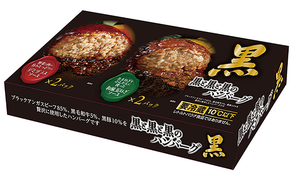 黒豚のハンバーグは濃厚な豚肉の味わいが楽しめます。和風とデミソースの2種類で、温めるだけで高品質なハンバーグを味わえます。