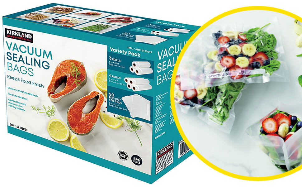 丈夫で多用途に使用できるバキュームシーリングパックです。様々な食材に合うようにカットできるロールタイプと約1Lサイズにあらかじめカットされている50枚の袋が入っています。残り物やまとめ買いをした食品を密封して冷凍や冷蔵で保存できるほか、低温調理の使用もできます。