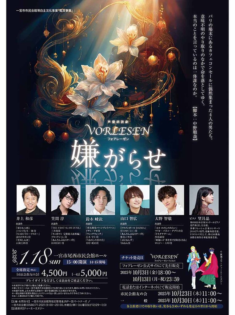 岐阜市文化センター、ぎふしんフォーラムにて窓口販売・電話予約開始。その他チケットぴあ、ローソンチケット、プレイガイドぎふにて取扱い。
