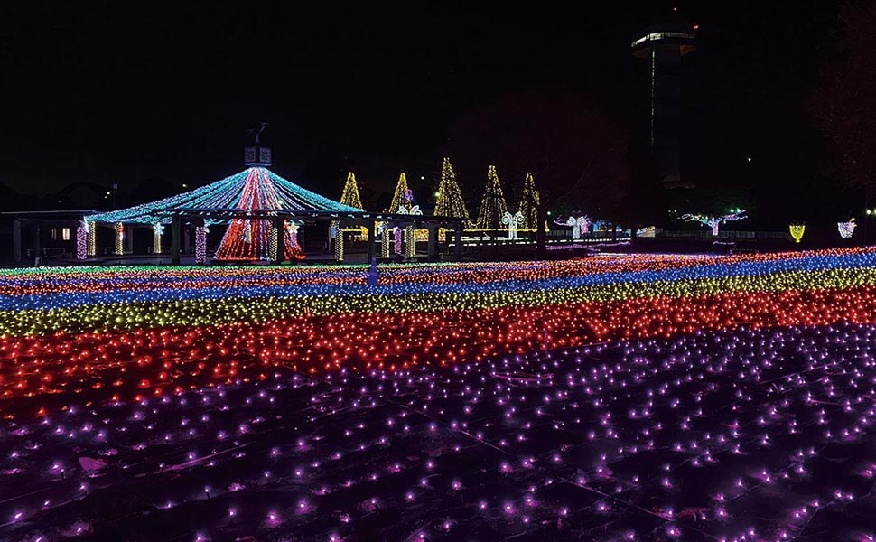 冬の風物詩となっている国営公園のイルミネーションイベントです。今年のテーマは「縁JOY! 幸せのWA」。園内を巡れば、50万球以上のイルミネーョン装飾によるファンタジックな世界を楽しめます。また、「Iris Clover -アイクロ- vol.100」(12月6日)や「JAZZの夕べ」(12月20日)などの音楽ライブのほか、星空観察会(11月29日、12月6日・13日・20日)、各種体験教室(土日祝)など、夜までさまざまなイベントも開催。期間中は夜間臨時開園しています。