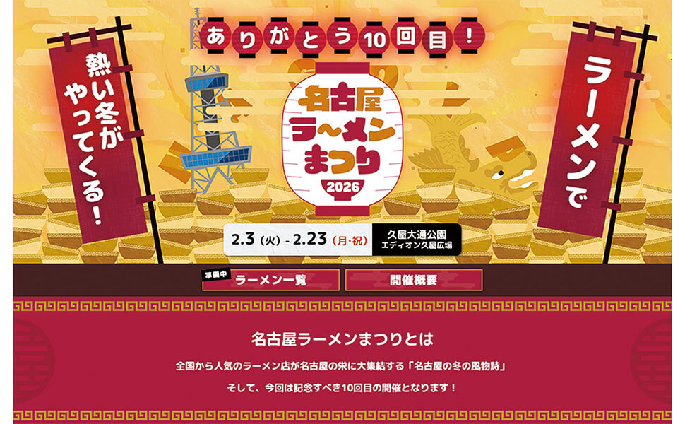 全国から人気のラーメン店が名古屋の栄に大集結する「名古屋の冬の風物詩」。今回は記念すべき10回目の開催です!
