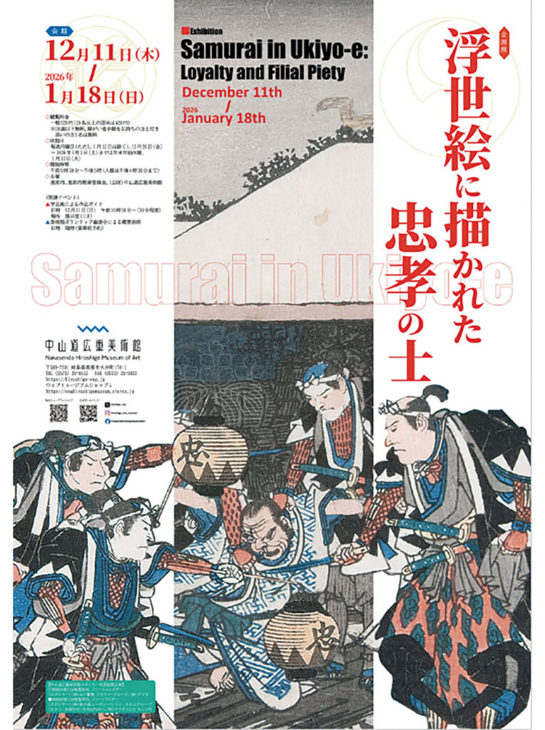 江戸時代、主君や親に忠孝を尽くす士を取り上げた戯曲や出版物は庶民の心を強く捉えました。本展では、三大敵討物に数えられる「忠臣蔵」や「曽我物語」などを主題とする浮世絵をご紹介します。