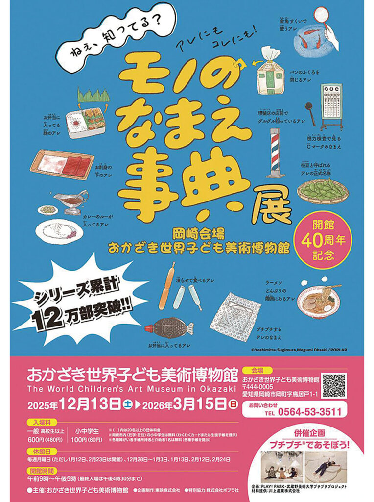 おかざき世界子ども美術博物館は2025年に開館40周年を迎えました。40周年企画の第四弾としてシリーズ累計12万部を突破した書籍、「モノのなまえ事典」の展覧会を開催します。