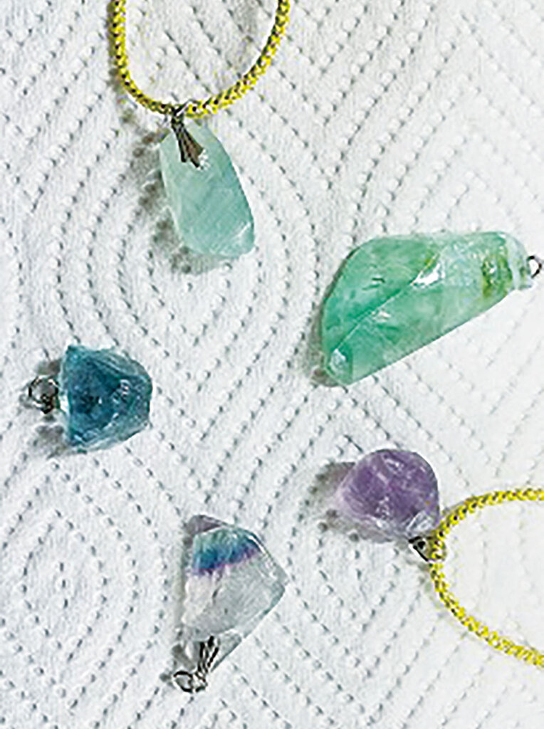 蛍石等を使って実験を行った後、ペンダントを作ります。