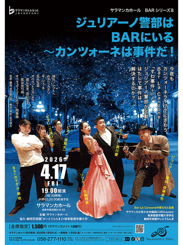 劇団芝居屋「かいとうらんま」の人気キャラクター「ジュリアーノ警部」。今夜もカンツォーネライブでにぎわうバーに「事件だ!」と警部が出動。さて、事件は解決するのでしょうか…。
