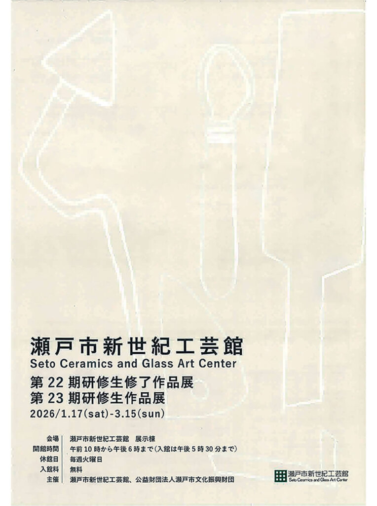 瀬戸市新世紀工芸館では、陶芸とガラス工芸の次世代を担う人材育成を目的として、陶芸コースとガラス工芸コースの研修生を受け入れ、自由な制作活動を支援しています。本展は、それぞれの研修活動を通して制作した作品を展示し、活動の成果をご覧いただきます。