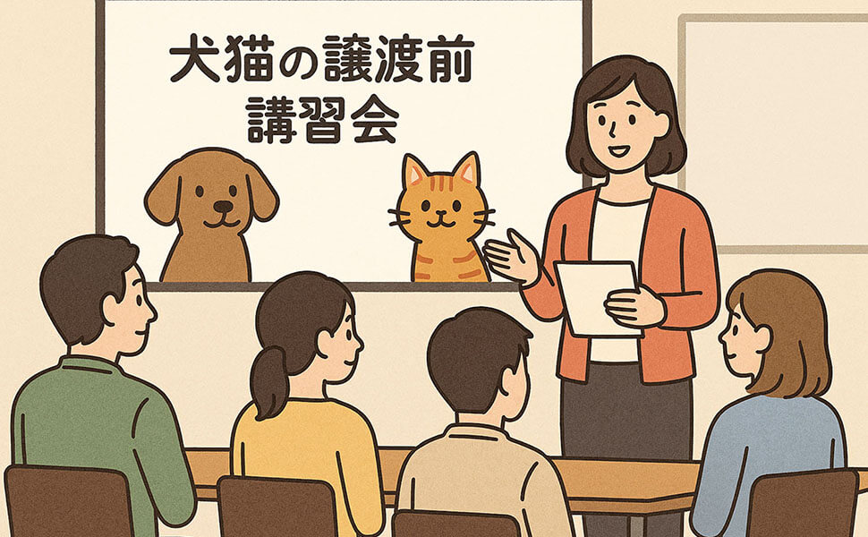 動物愛護センターから犬や猫の譲渡を希望している方は譲渡前講習会を受けていただく必要があります。犬猫の生態や習性、正しい飼育方法について学びましょう。