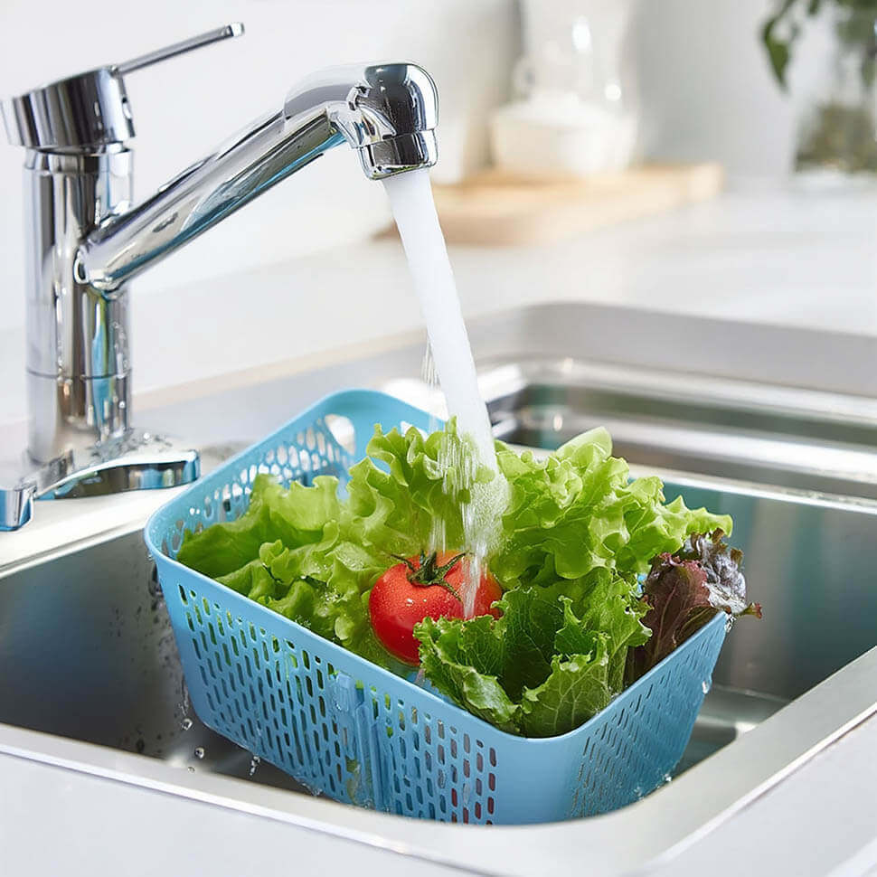 シンプルでモダンな雰囲気を持ちながら、ブルーやピンクなどの鮮やかなカラー展開があります。キッチンでの野菜やフルーツの収納、バスルームでのタオルやアメニティ整理、リビングでの小物入れなど、家中の様々な場所で活躍します。