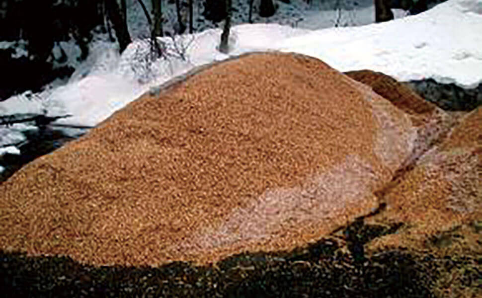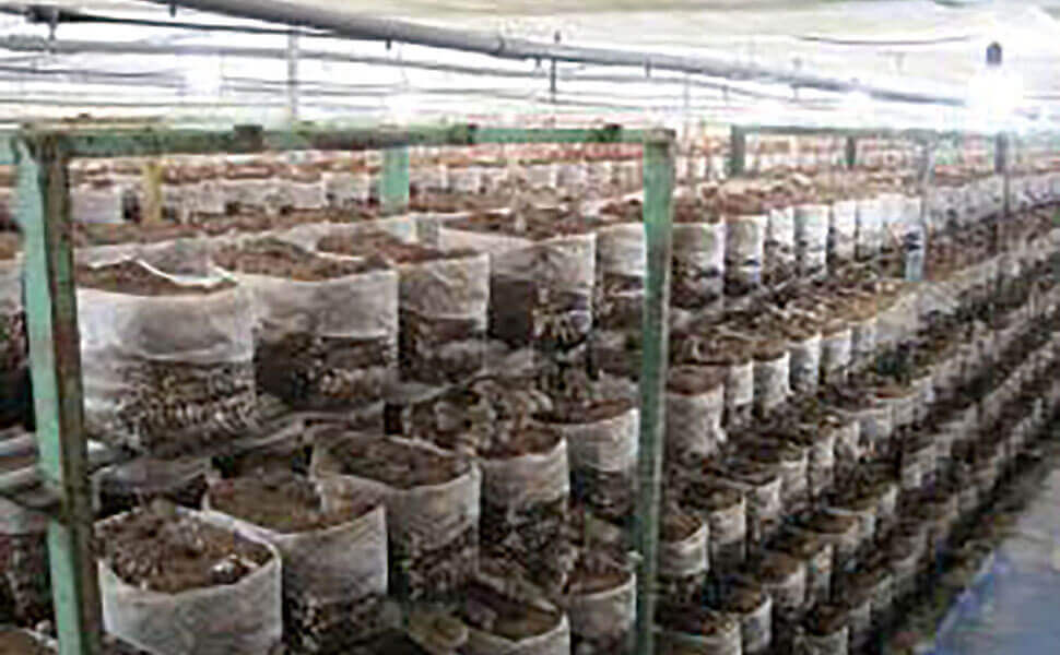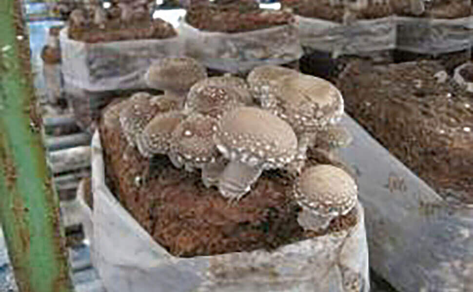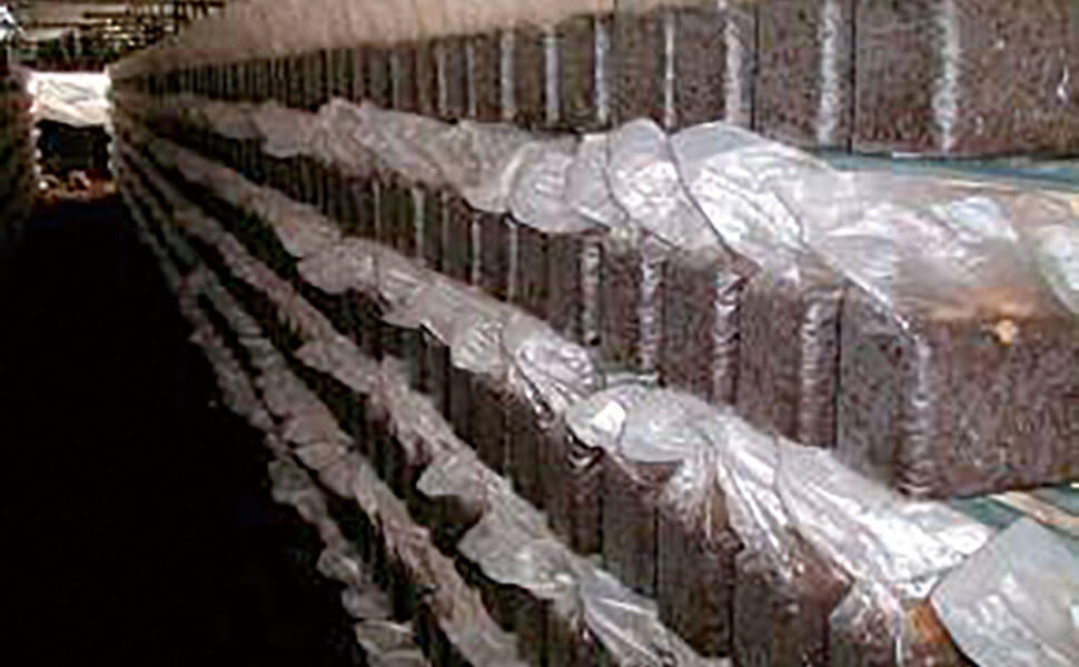 JAひだやまっこ出荷組合では、前年の冬に菌床ブロックを準備し、菌をブロックに植え付け袋詰めをし、秋まで菌を培養します。