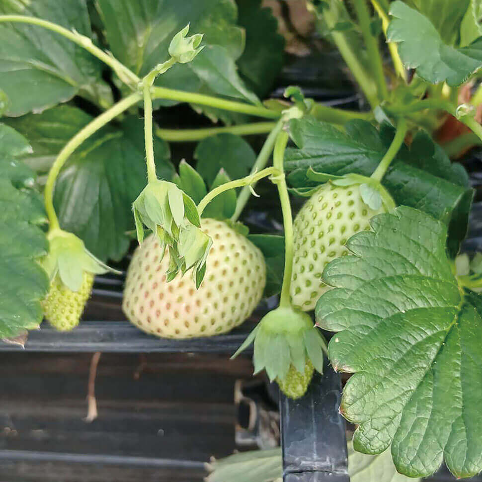 色づく前のいちご『華かがり』。(©️SAKURA編集部)