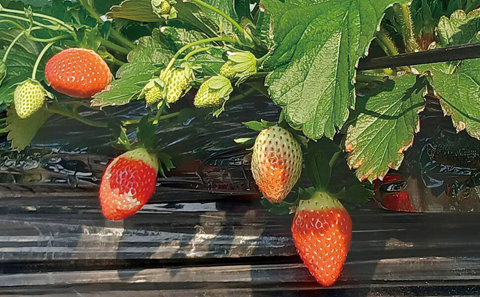 気候変動による農作物への打撃は、いちご生産者さんにも襲いかかり、夏の猛暑により秋口に気温が下がらない日が続くと、開花が遅れ年内の収穫量が減る傾向にあるそうです。例年だと9月中旬には花芽がつくいちごの苗は、昨今では9月末の開花になってきているのだとか。いちごの花芽の形成が遅れないよう、しばらく予冷庫に保管するなど改めて猛暑対策に対する試験を繰り返し行っています。