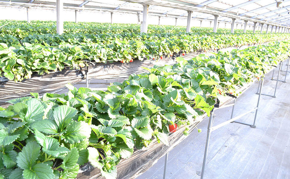 高設栽培で清潔さを保った圃場。温度管理、給水システムが自動化されている。(©️SAKURA編集部)