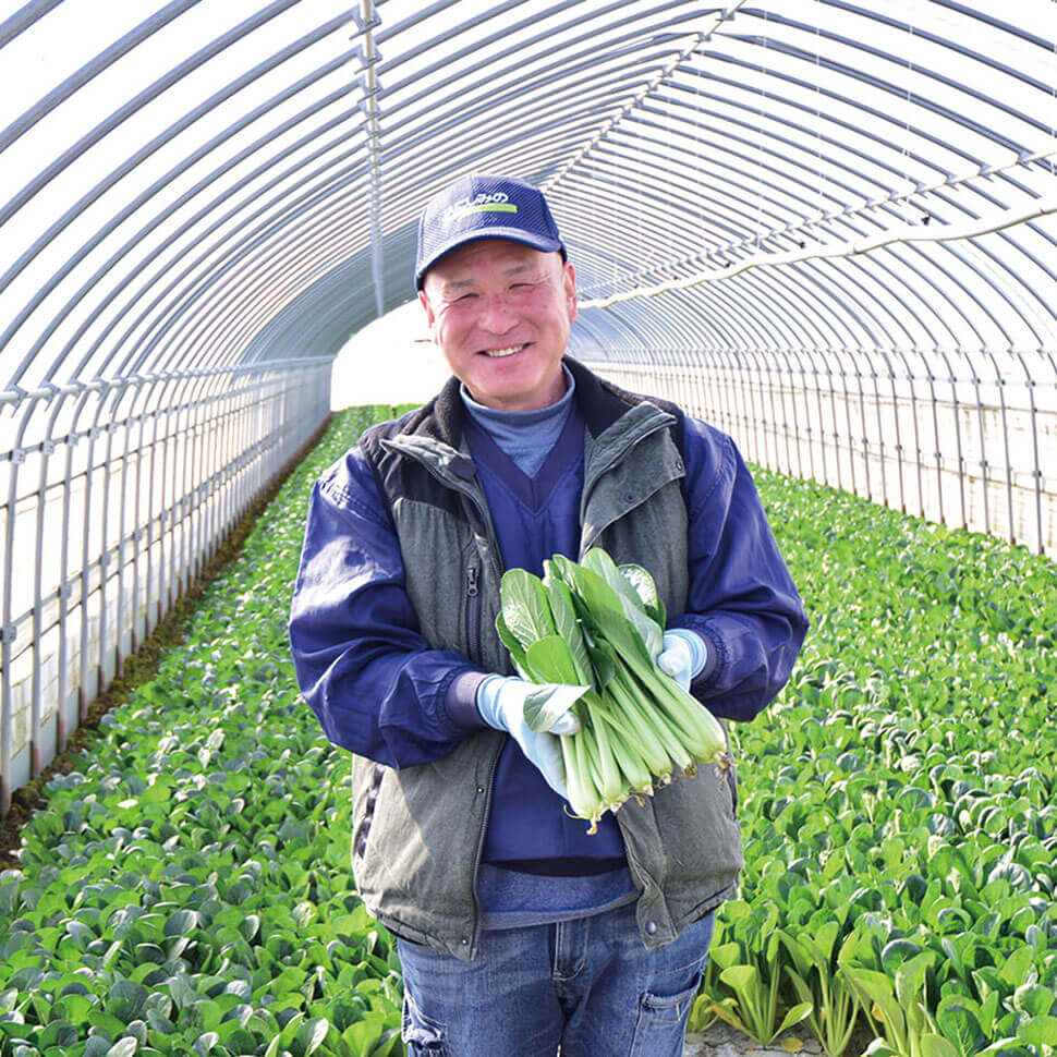 家業の農業を継ぎ、6年程前から小松菜づくりにもチャレンジする矢野さん。30年以上の経験とノウハウを活かし美味しい小松菜を作り続けています。