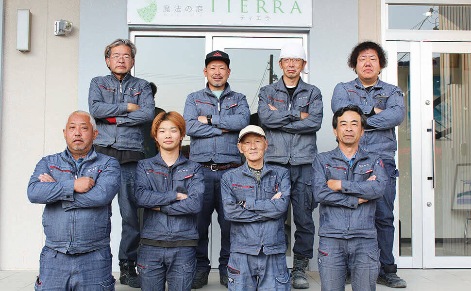 地域最大級の展示場を誇る外構・エクステリアの専門店「ティエラ・マヒカ」。個人のお客様からの依頼はもちろん、長年にわたり大手ハウスメーカーからの外構設計・施工も多数手がけ、多くの実績と信頼を得ています。設計から施工、アフターケアまで、すべて自社一貫のワンチームで対応。「お客様のライフスタイルや元請けさんの意図をしっかりとくみ取って、理想を形にする外構プランを提案します。」と設計担当の今峰さん。「お客様のご希望の納期に間に合うよう、忠実かつ迅速な対応を心がけています。」と話されました。