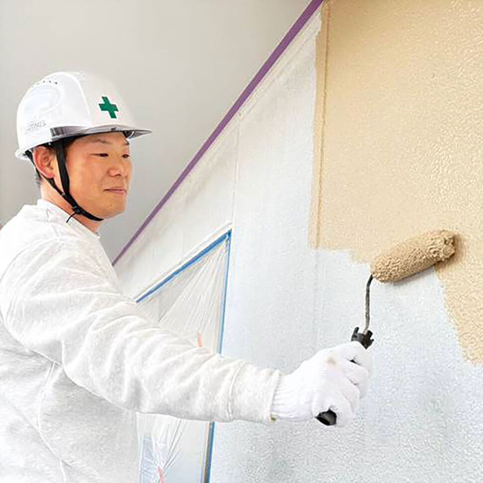 建物をきれいに蘇らせ、人の暮らしを支える仕事に誇りを持つ柴崎さん。「もし自分の家だったらどうするか」という視点で、見えない部分や下地処理まで決して手を抜きません。仕上がりが形として残る仕事だからこそ、妥協せず技術を磨き続けてきました。完工後に「頼んでよかった」とお客様から声をかけられる瞬間が、何よりのやりがいだと語ります。現場ではチームワークや人との繋がりを大切にし、仲間や後輩へ技術を伝えていける存在になれるように今日も誠実な仕事を積み重ねています。