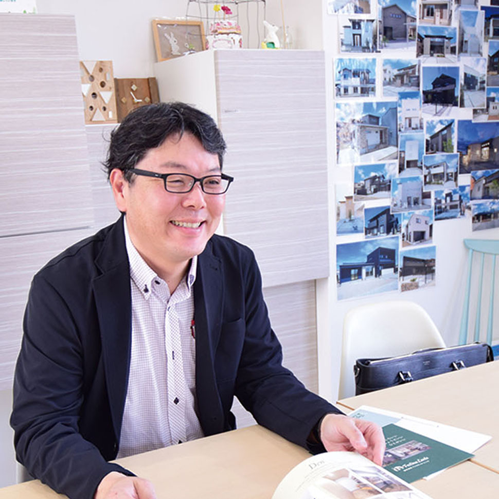 現場監督の豊富な経験と安定感のある営業マンとして活躍する鷹羽さんは、初めての家づくりで失敗したくない想いが強いお客様にも、デザインはもちろん、お金や今後のことも幅広く相談でき、建てたときもその後もずっと付き合えるとお客様にも人気です。