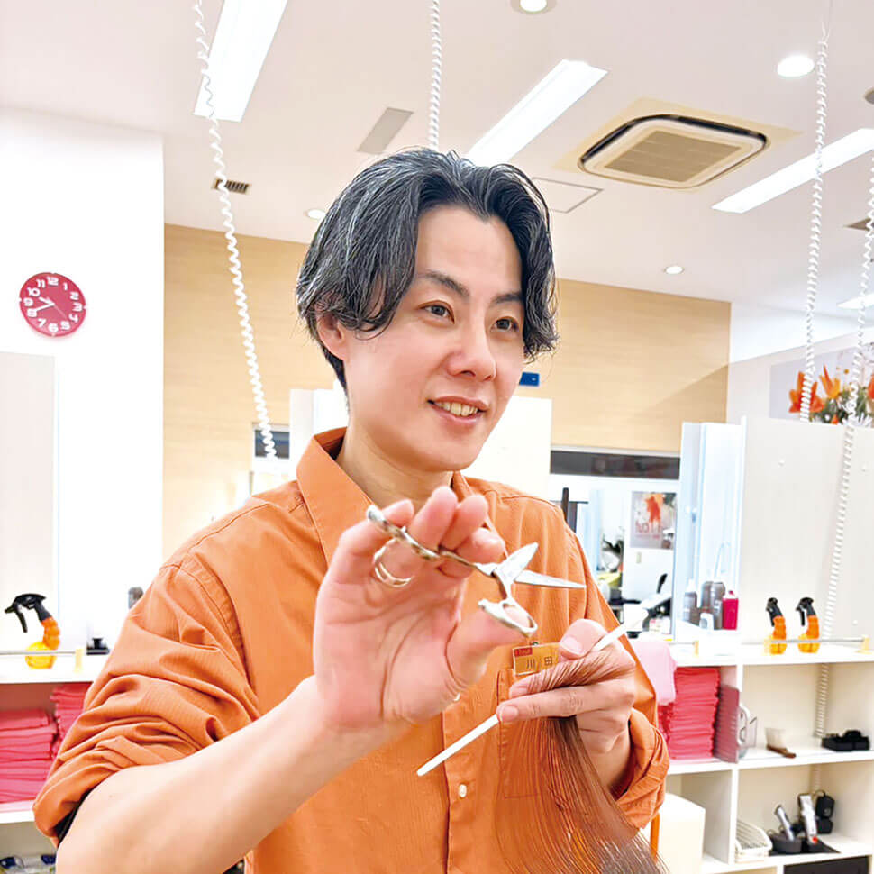 一人ひとりのお客様のご要望に寄り添い、確かな技術で理想のスタイルを形にする川田さん。スタイリストとして日々ハサミを握る傍ら、店長としてスタッフが生き生きと働ける環境づくりにも心を配っています。