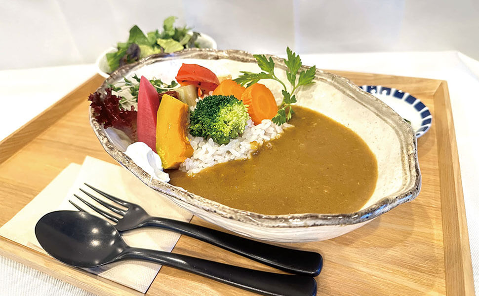 無添加や無農薬にできる限りこだわり、塩や調味料、肉の安全性にも徹底して配慮。安心して食べられる料理を提供しています。若者からご年配まで幅広い客が訪れ、暖かい季節にはワンちゃん連れも立ち寄ります。ゆったり過ごしながら、身体を気遣う食事が楽しめるカフェとして人気です。