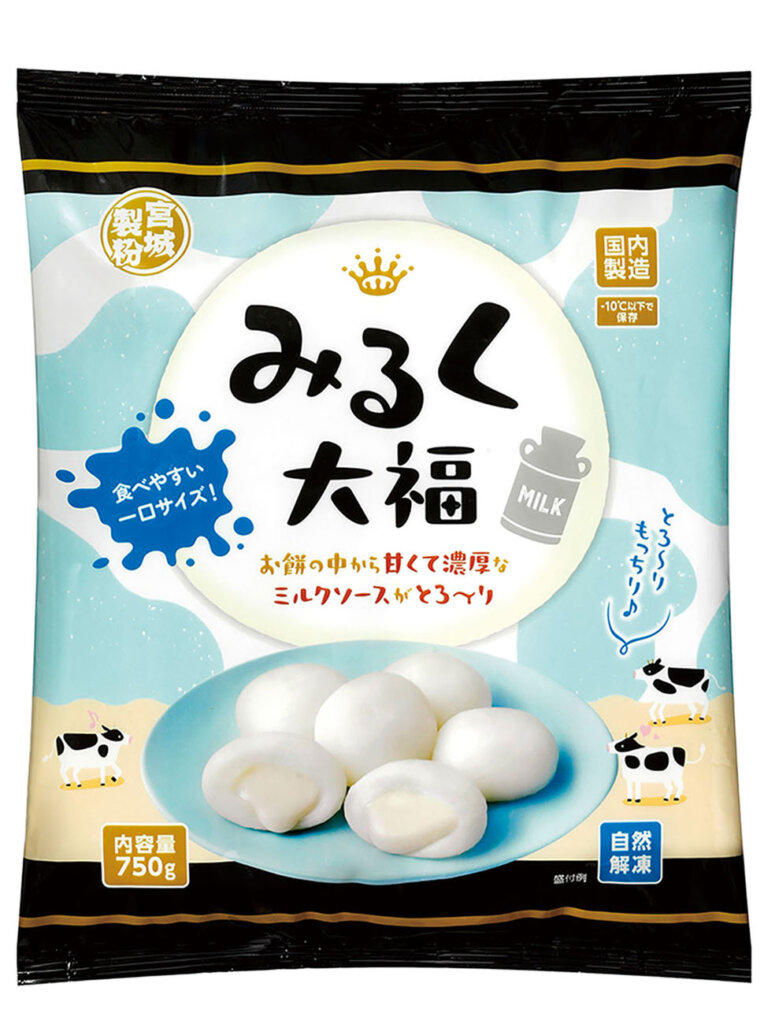 もちもちとした餅生地に甘くて濃厚なミルクソースを包んだ、一口サイズの大福。ミルクのコクとやさしい味わいが特徴。半解凍でアイス風にしても◎