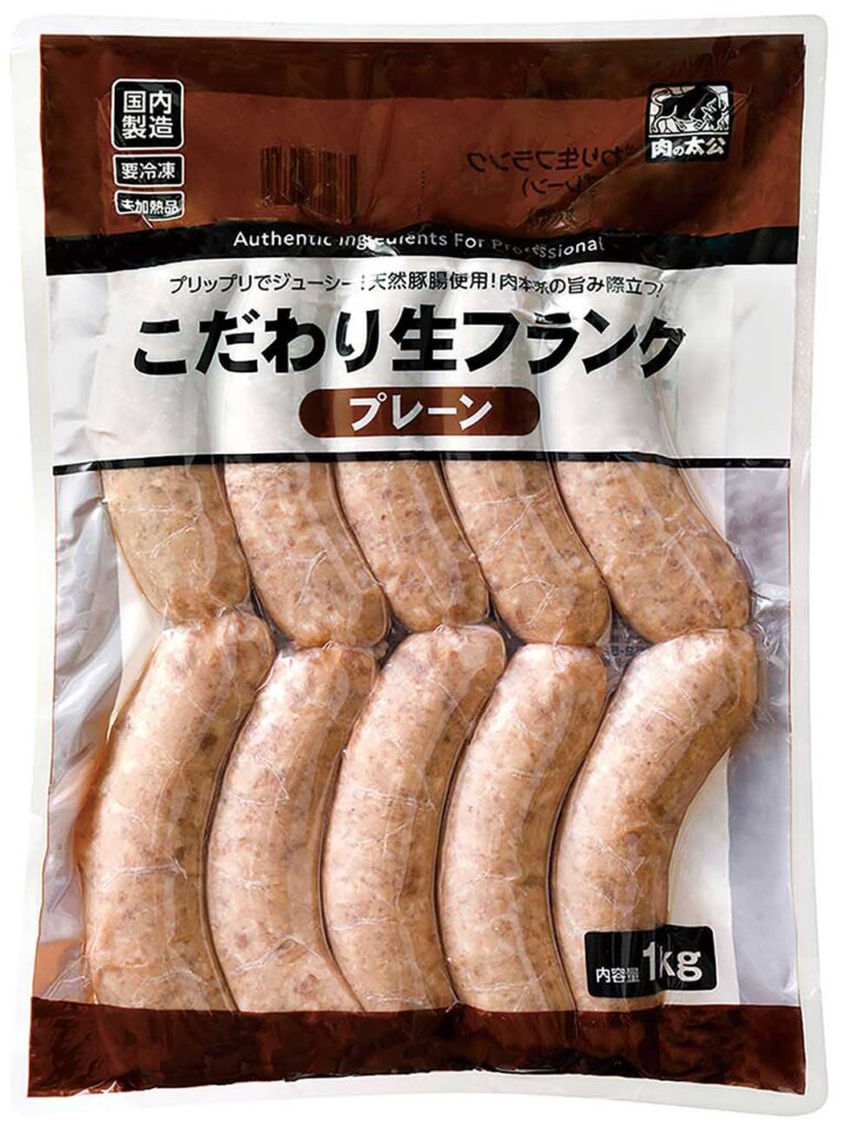 天然豚腸を使用したパリッとした食感の生フランク。ジューシーで肉の旨みが際立つプレーンな味わい。ボイル後に焼き色をつけると、さらに美味しく仕上がります。