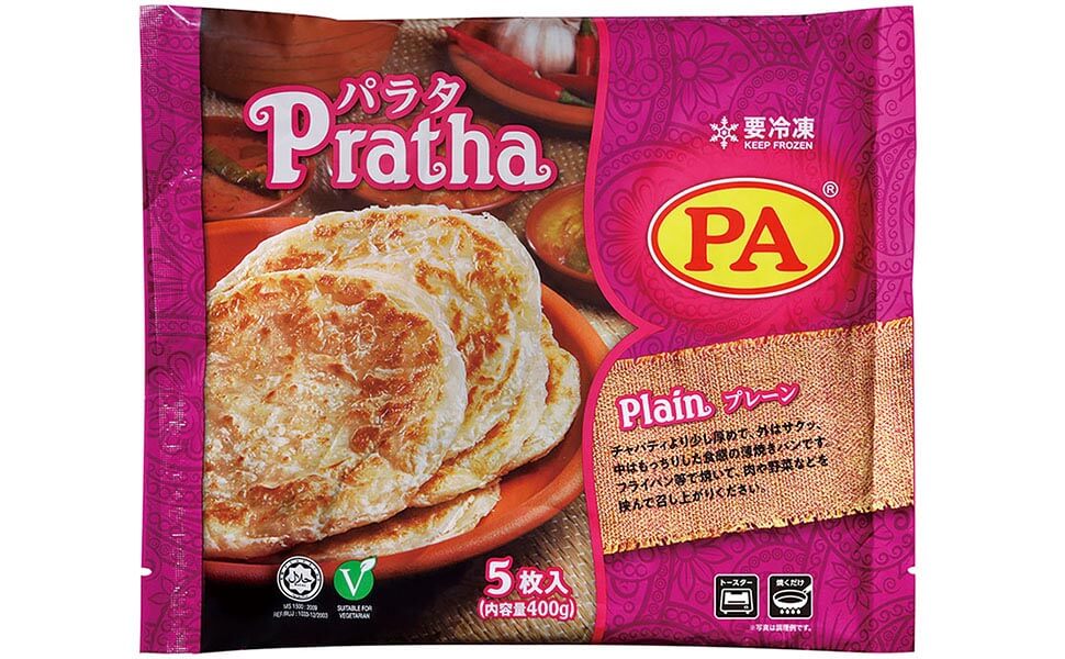 外はサクッ、中はモチッとした薄焼きパン。チャパティより少し厚めで、食べごたえ◎フィルムが挟まれていて、一枚ずつはがしやすいのも使い勝手が良くて便利!