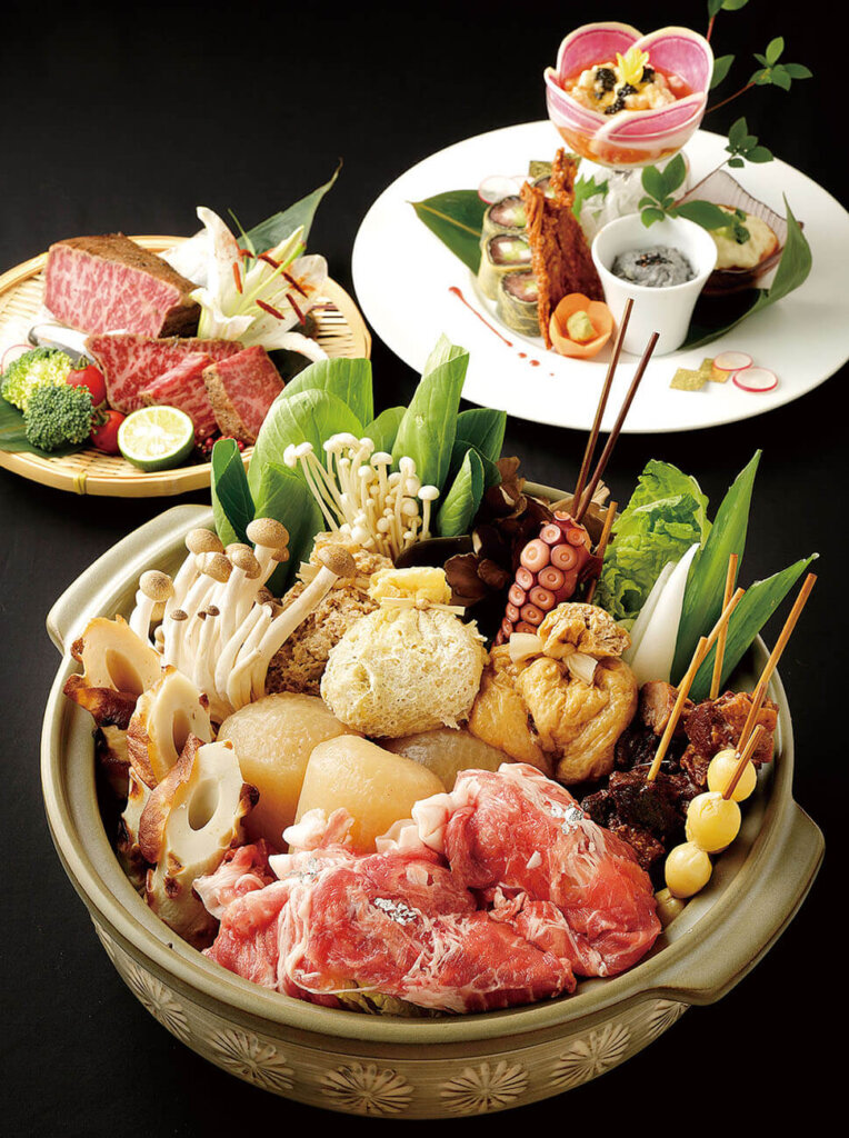 屋台ムードで躍動感あふれる一階席、掘りごたつでゆっくりくつろげる二階席。シーンに合わせての利用も可能で、名物のおでん・串揚げの他にも様々な創作料理を心ゆくまで。