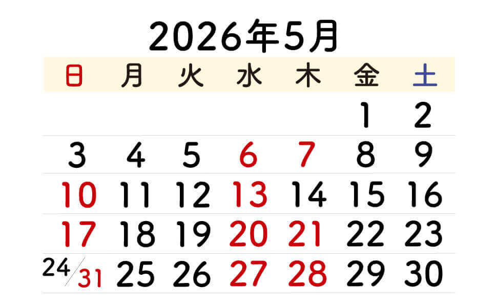 ※赤は休診日です。 ※メディカルエステサロン「フローラ」の休日も、いちだクリニックと同じです。