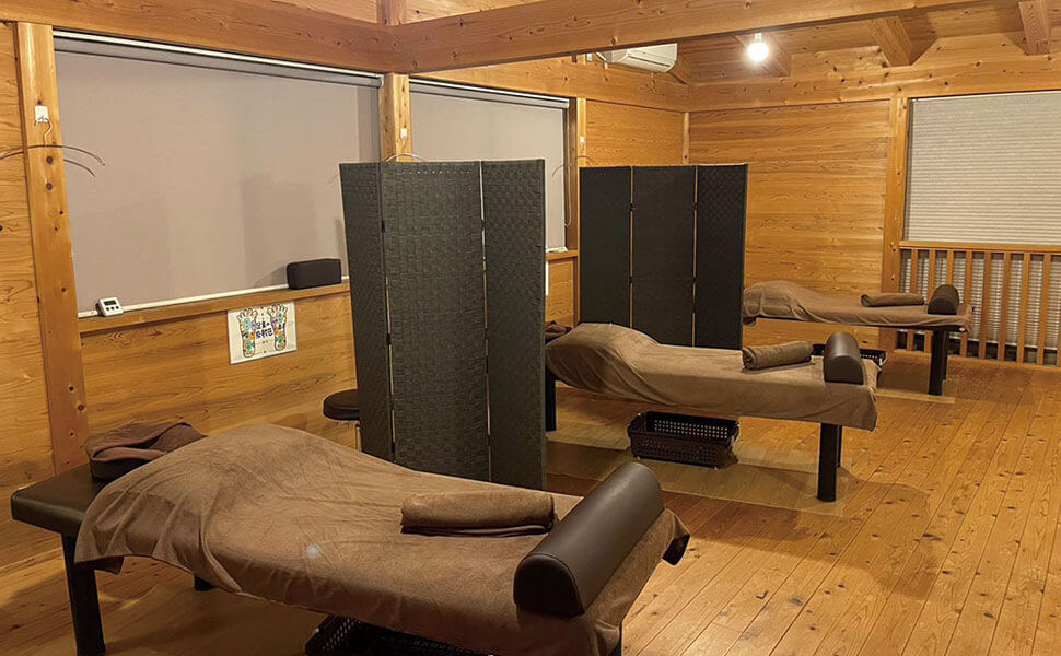 木目調の落ち着いた空間でリラックス。もみほぐし・フットケア・タイ古式・オイル・脱毛まで全て完結。