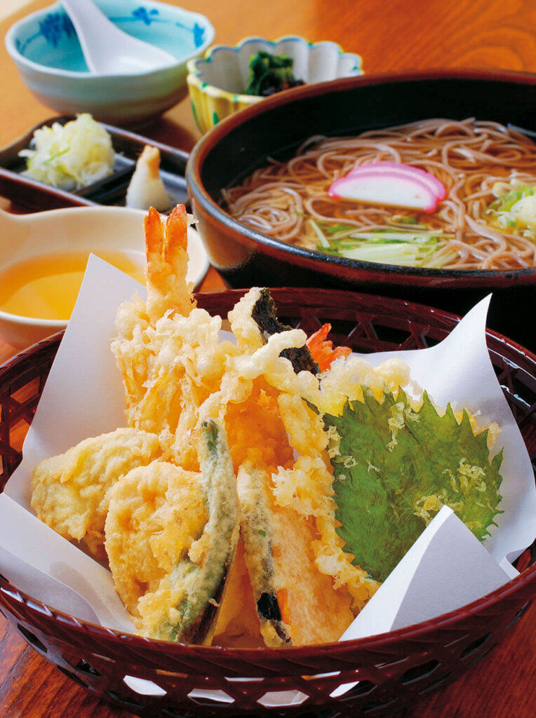 蕎麦屋伝統の「衣」に花を咲かせた天婦羅