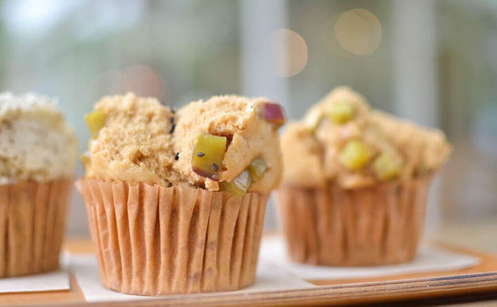 『KAKAMIGAHARA STAND』の看板メニューは、いろいろな種類が楽しめるふんわりもっちり食感の蒸しぱん。季節や日替わりで、5~10種類ほど販売されています。蒸しぱんの原材料は、岐阜県産小麦粉「タマイズミ」、粗糖、塩、ベーキングパウダー(アルミニウムフリー)。ここに無調整豆乳、油を少し加え蒸しあげています。